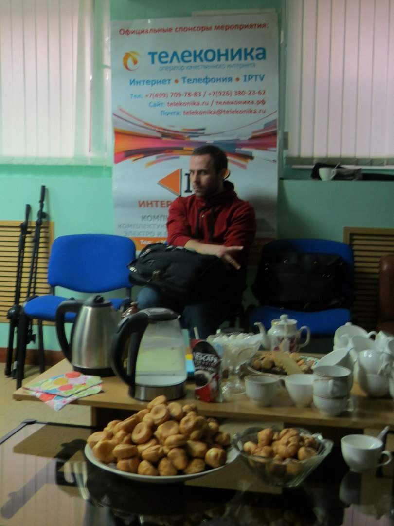 Как обычно на квартирнике каждому желающему был открыт доступ к свободному микрофону, чем и воспользовались зрители, в том числе и поэт из Рузы, декламирующий свои произведения под псевдонимом Vermando. А к чаю в этот вечер прилагались сладкие пирожные (Предоставленные интернет-магазином "ПК2" и оператором качественного интернета "Телеконика") – все-таки двойной праздник!